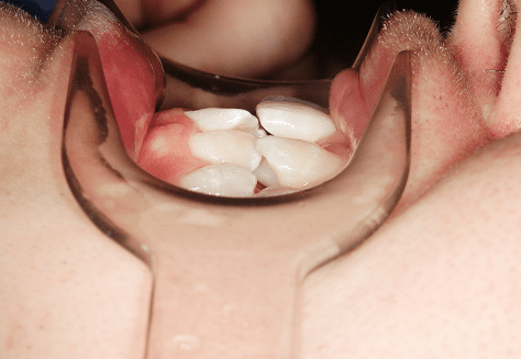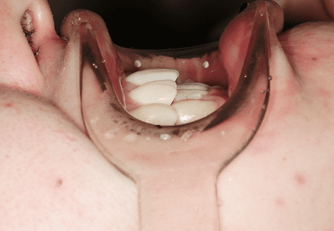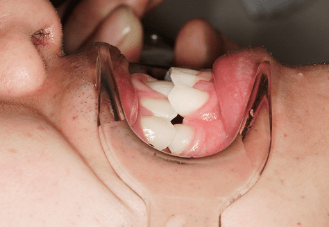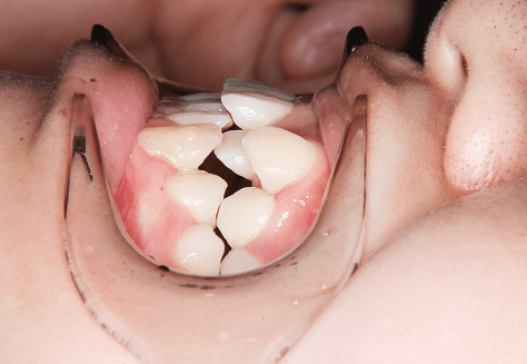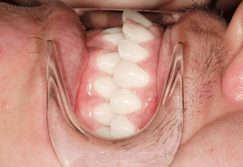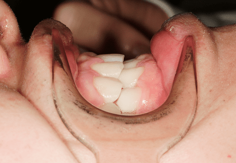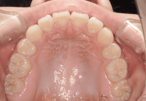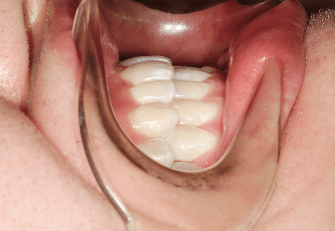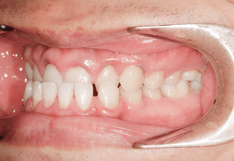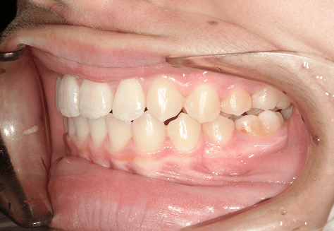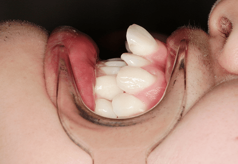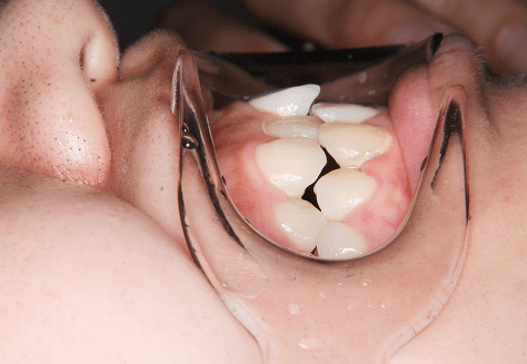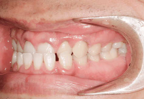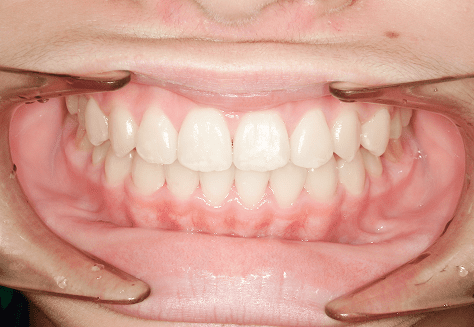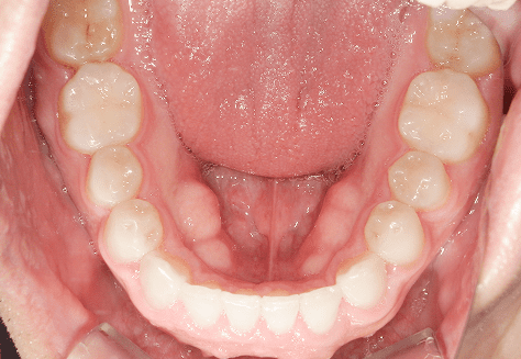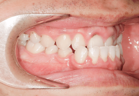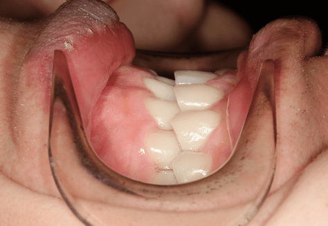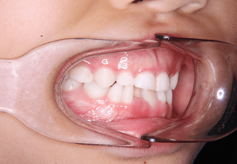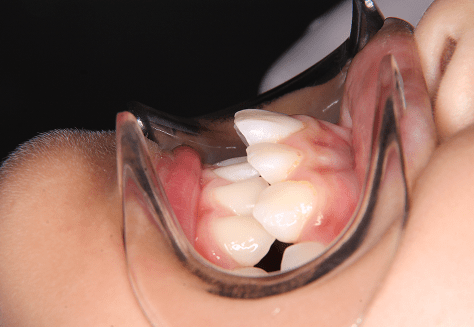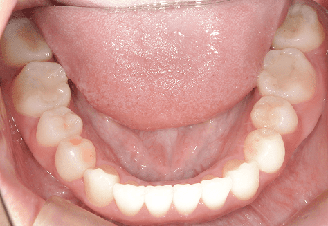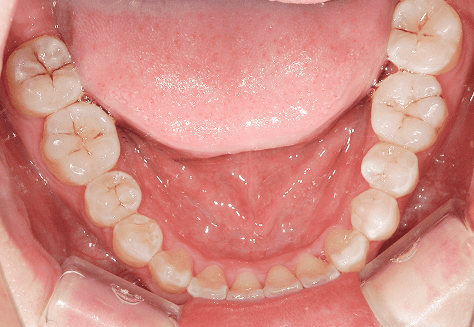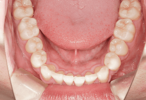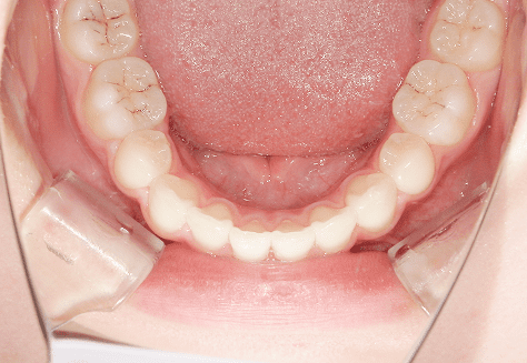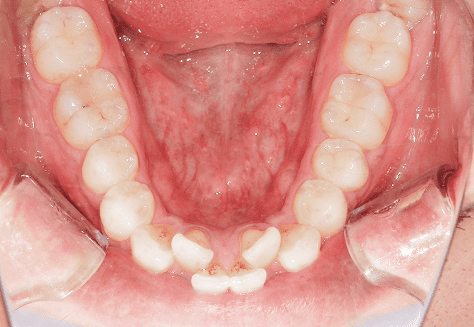 下の歯が特にガタガタなのが気になる。上の前歯が1本反対になっている。