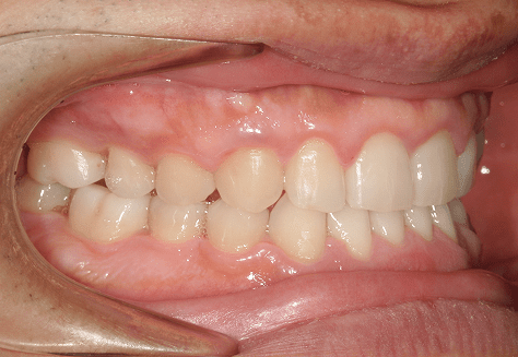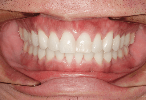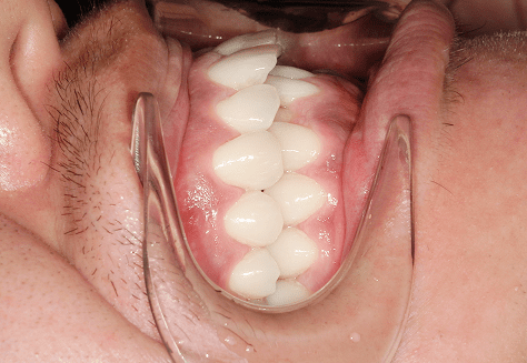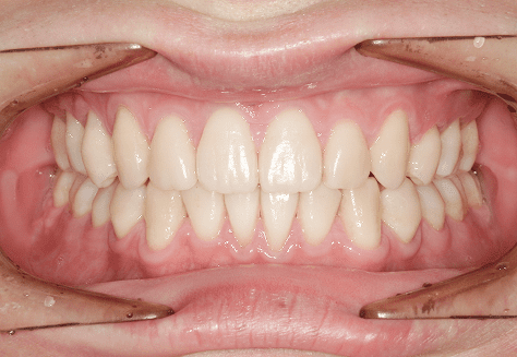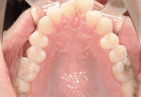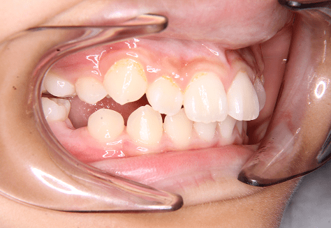 前歯の見た目が気になる。反対になっているところを綺麗にしたい。
